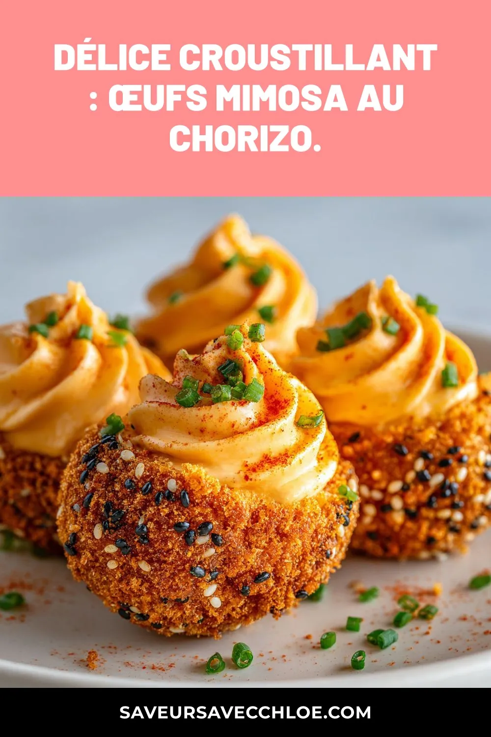 Des œufs mimosa revisités en version croustillante au chorizo: une explosion de saveurs et de textures qui séduira tous vos convives!