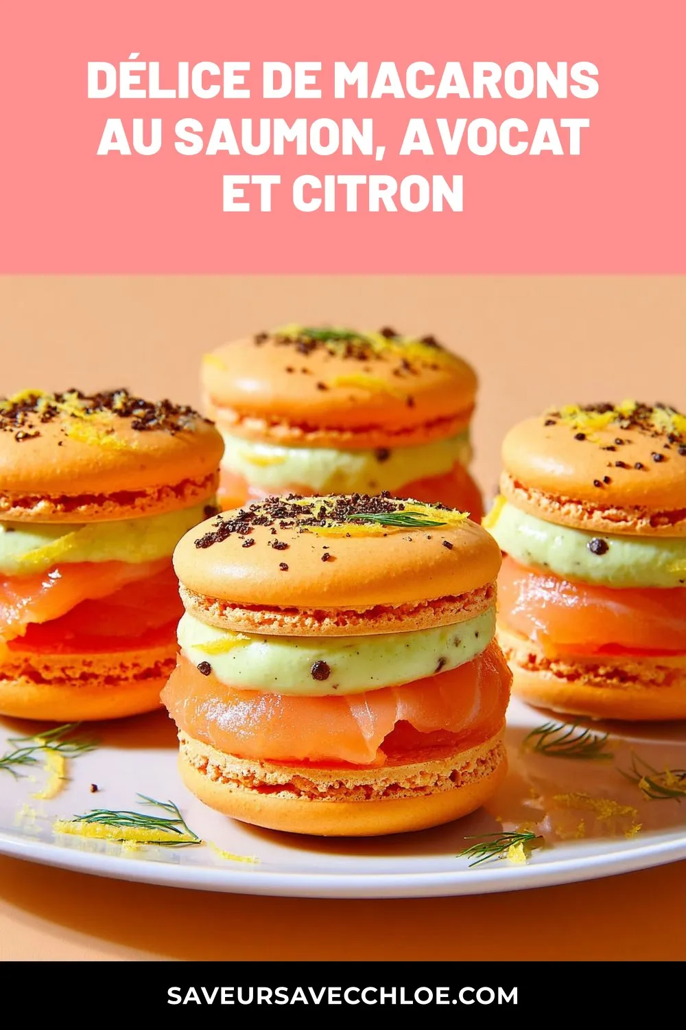 • Mélange de saveurs: L’alliance sucrée des coques de macarons avec la fraîcheur du saumon fumé et la texture crémeuse de l’avocat citronné crée un équilibre parfait de saveurs.