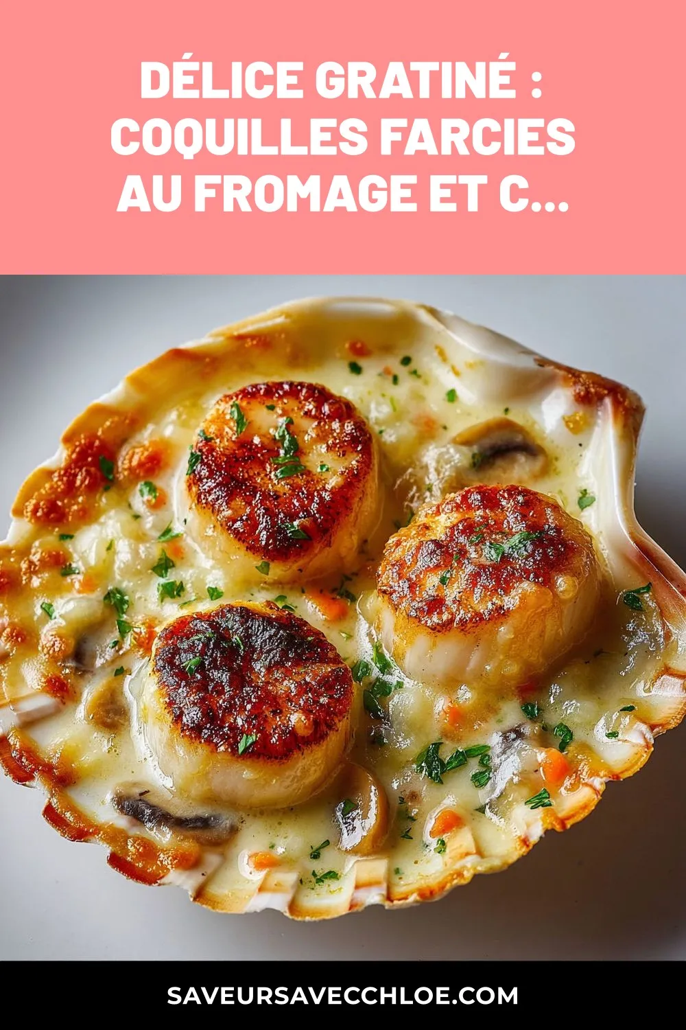 Des noix de Saint-Jacques nacrées, une sauce crémeuse aux champignons, le tout gratiné avec du fromage pour un plat festif inoubliable.