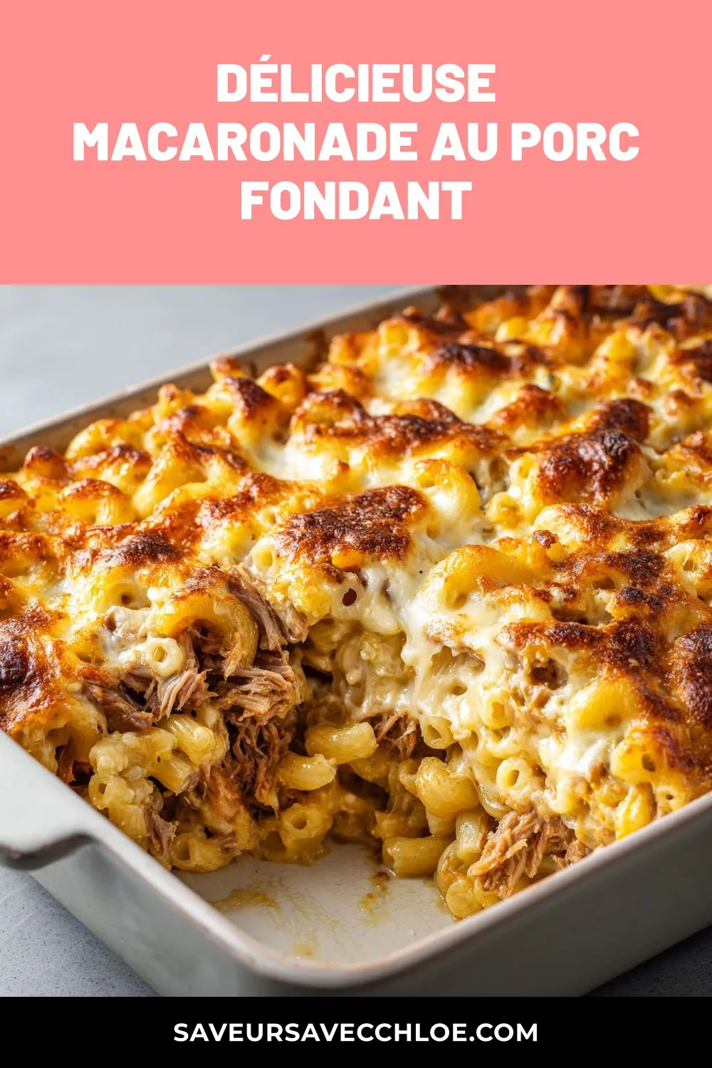 Un gratin réconfortant de macaronis avec du porc braisé, crémeux et filant, à déguster en famille pour réchauffer les cœurs.