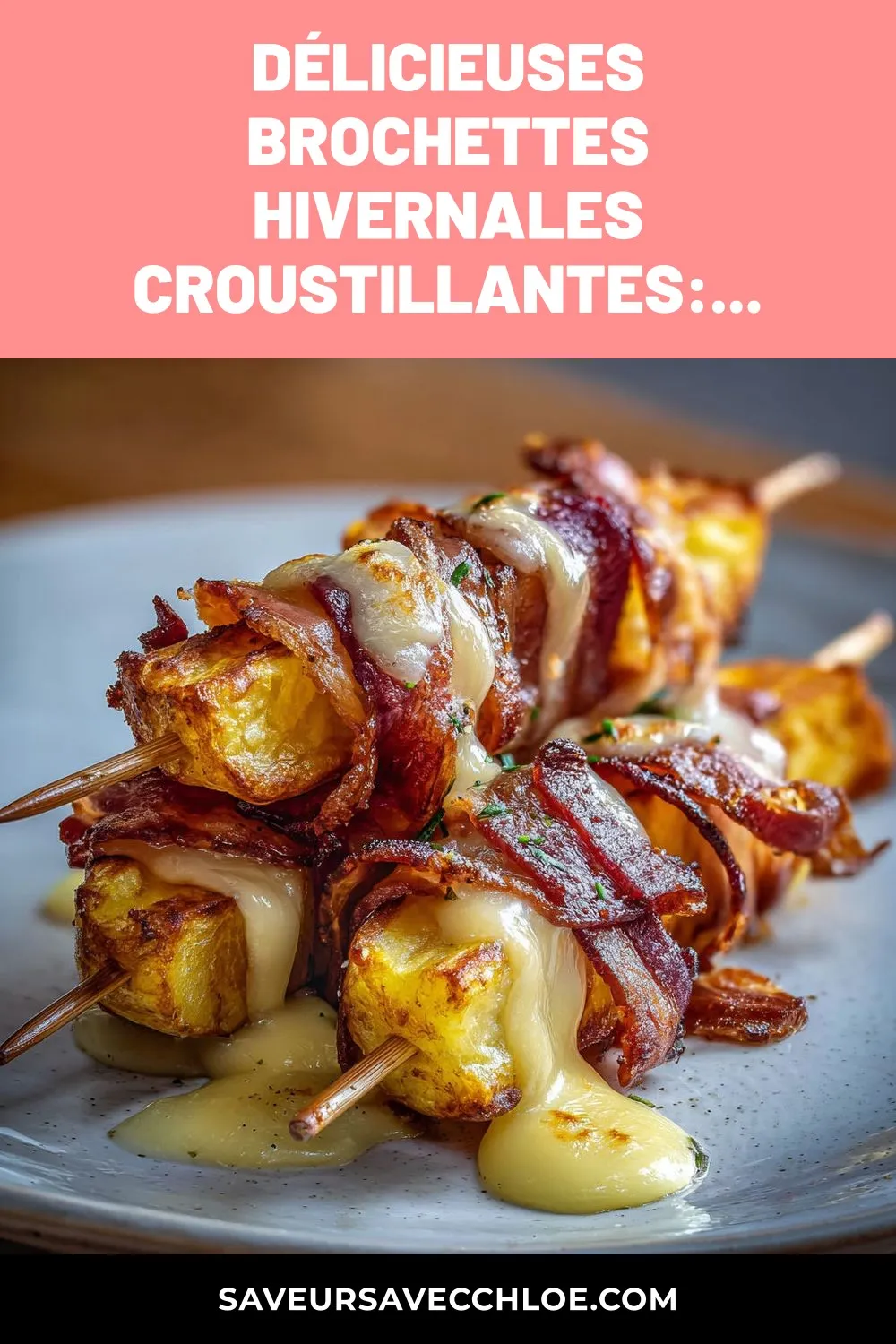 Des brochettes croustillantes d’hiver avec poitrine fumée, pommes de terre et fromage fondant, un plat réconfortant et convivial pour toute la famille.