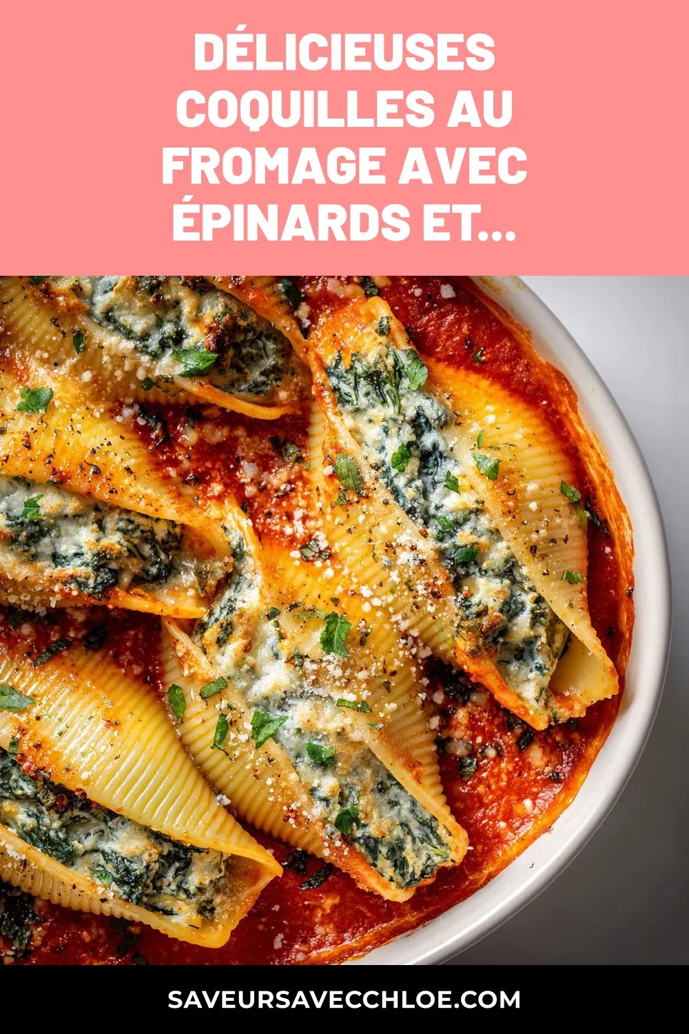 Des coquilles farcies au fromage cottage et épinards, nappées d’une sauce poivrons rouges rôtis, un plat réconfortant et convivial.
