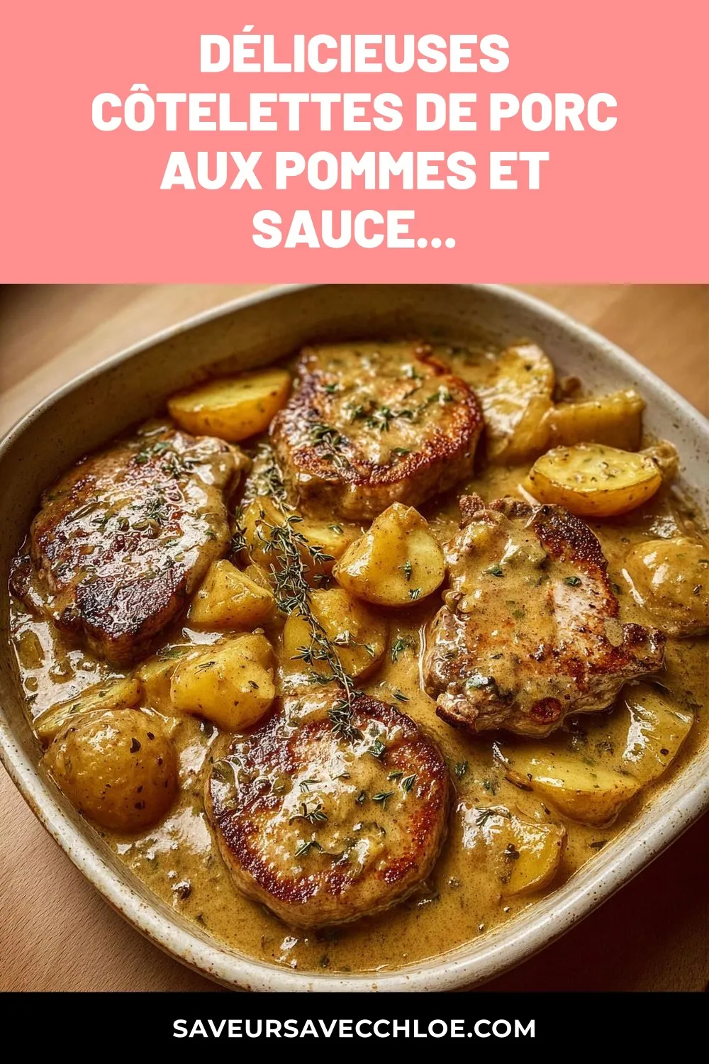Des côtelettes de porc tendres et juteuses avec des pommes fondantes dans une sauce savoureuse et réconfortante, un plat familial incontournable.