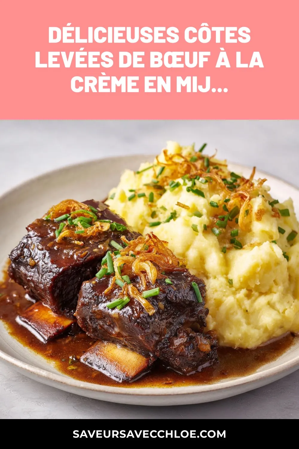 Côtes levées de bœuf mijotées dans une sauce savoureuse, accompagnées d’une purée crémeuse à la crème sure pour un repas réconfortant inoubliable.