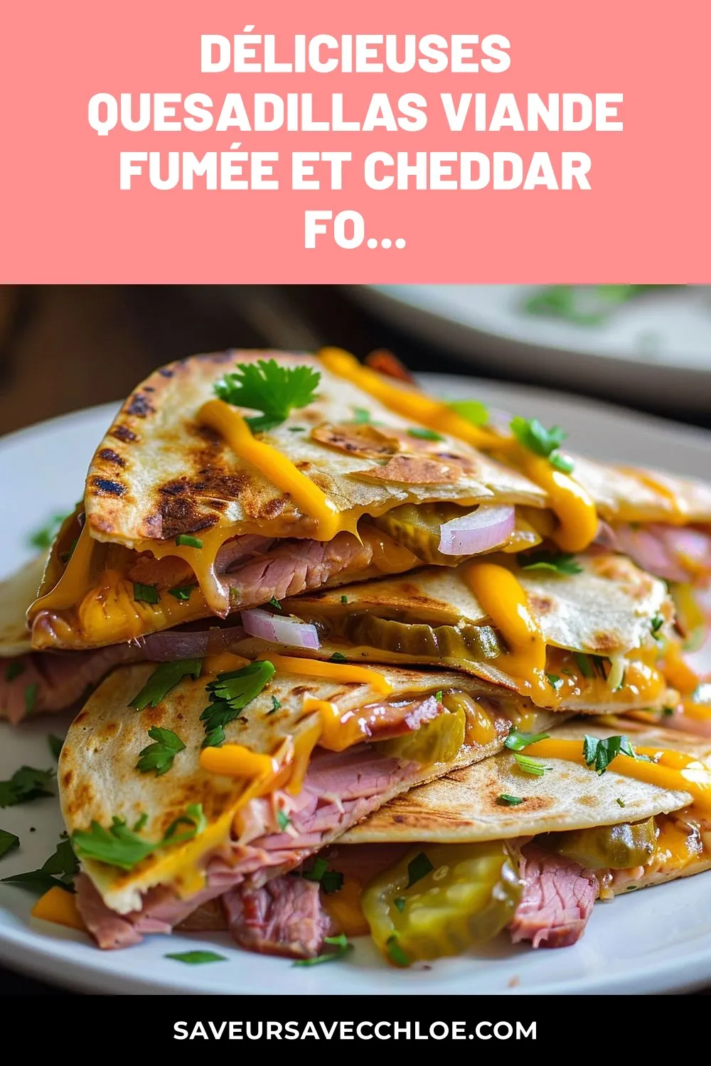 Des quesadillas réconfortantes avec une garniture de viande fumée, cheddar fondu et cornichons croustillants – un mariage de saveurs irrésistible.