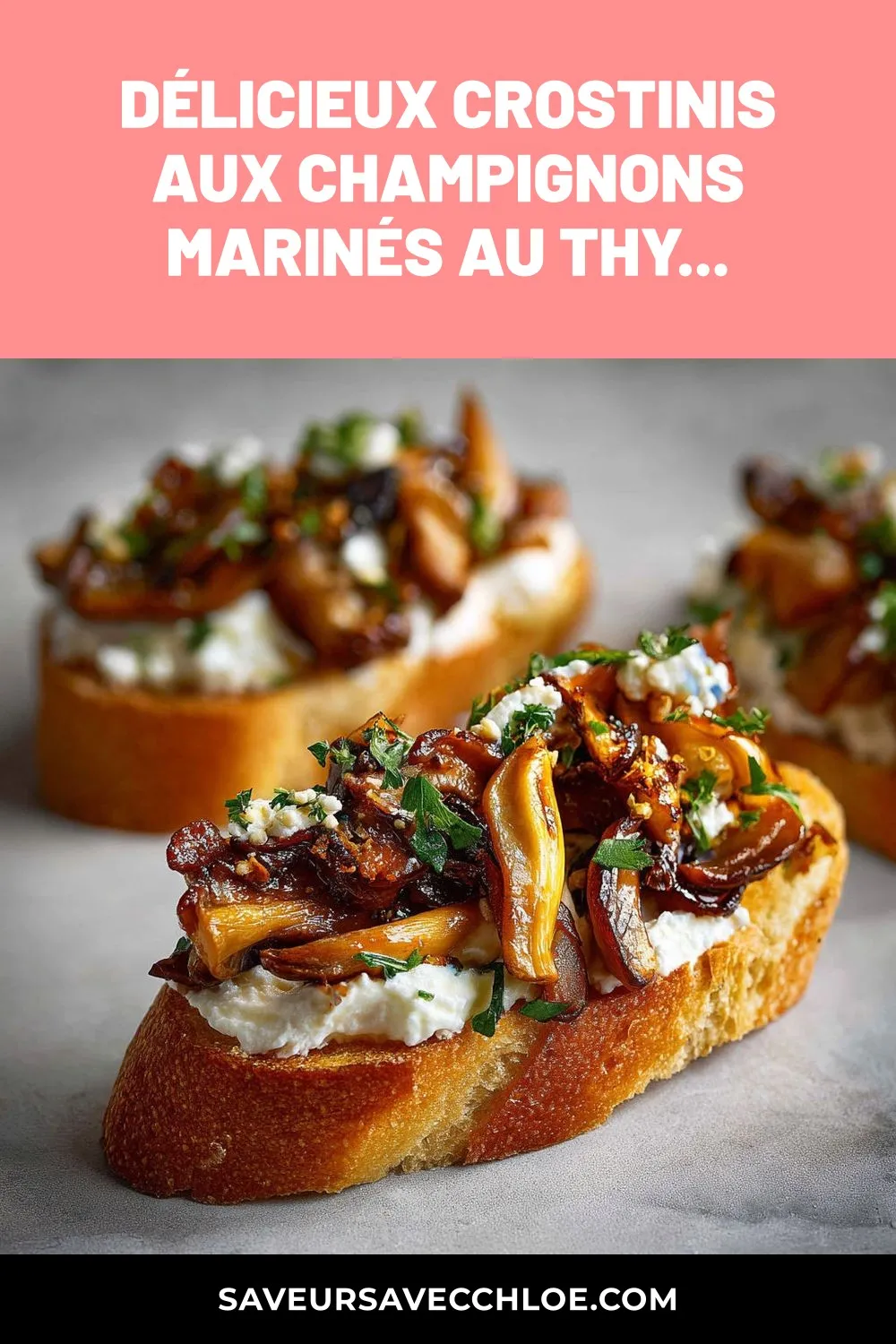 Délicieux crostinis aux champignons marinés au thym