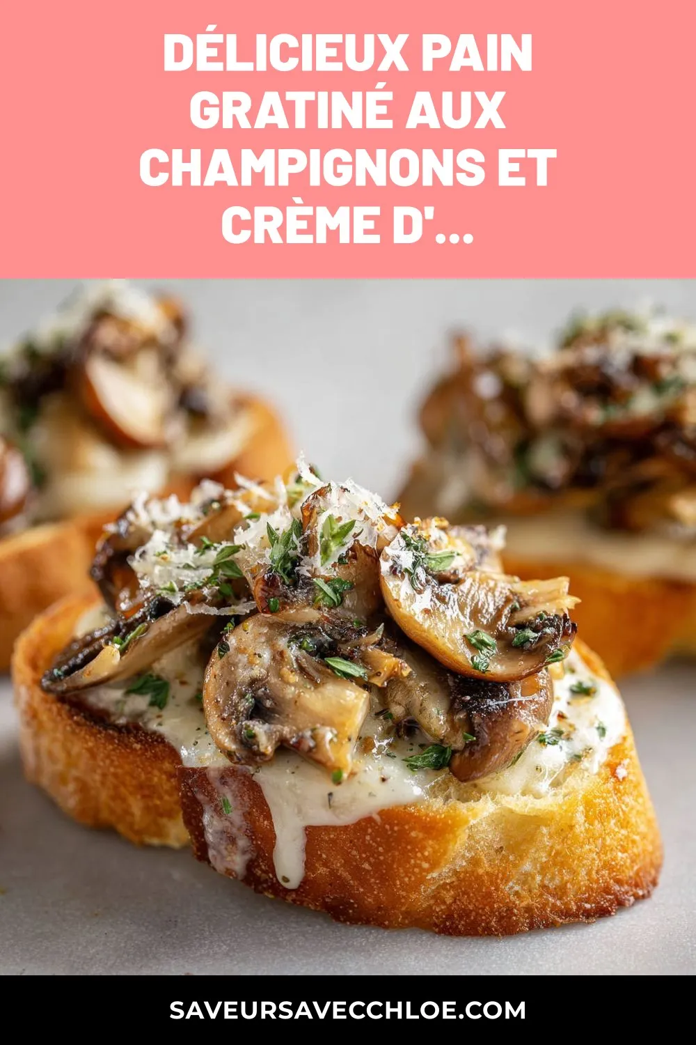 Délicieux pain gratiné aux champignons et crème d’ail