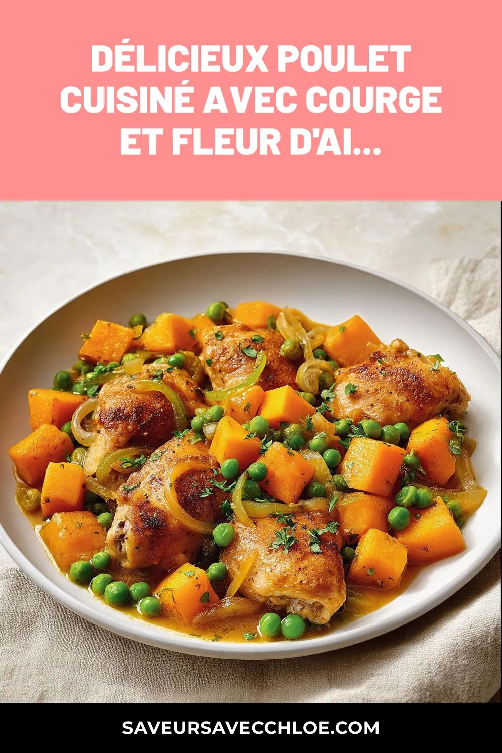 Pourquoi vous allez adorer cette recette de Délicieux poulet cuisiné avec courge et fleur d’ail.