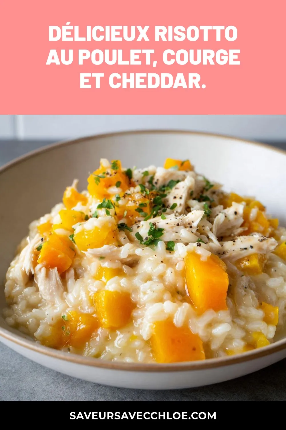 Pourquoi vous allez adorer cette recette de Délicieux risotto au poulet, courge et cheddar.
