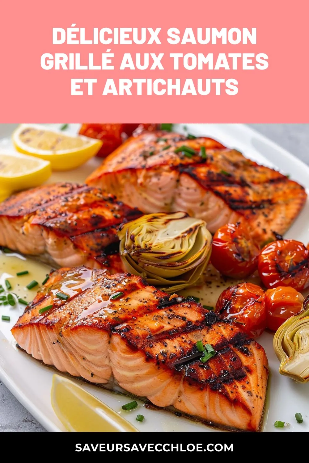 Délicieux saumon grillé aux tomates et artichauts