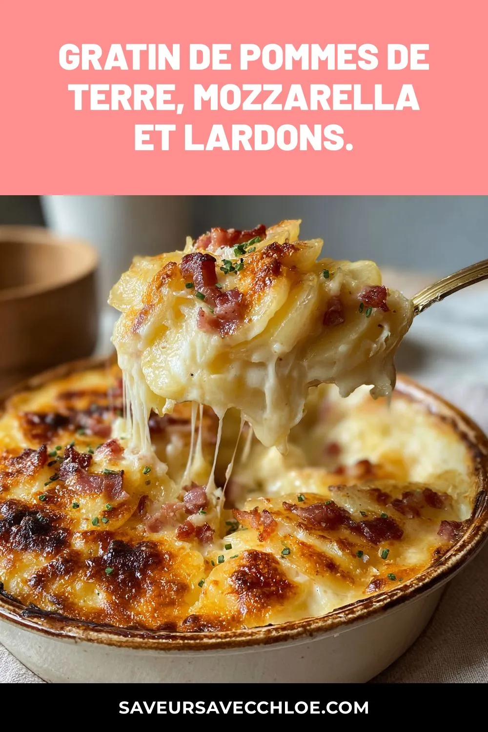 Pourquoi vous allez adorer cette recette de Gratin de pommes de terre, mozzarella et lardons.
