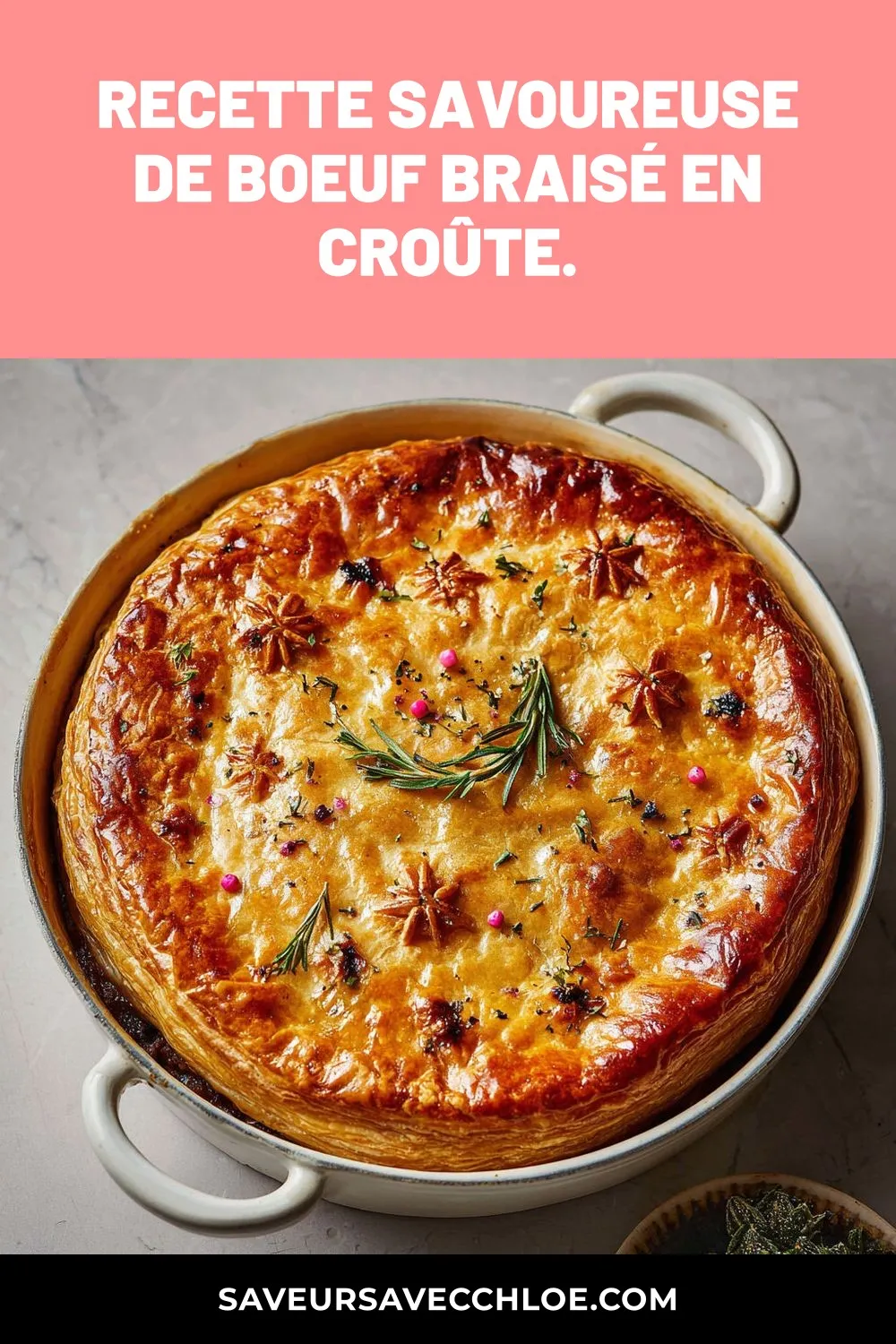 Une autre idée originale serait de servir individuellement le boeuf braisé en croûte dans de petites cocottes en fonte. Parsemez le dessus de chaque cocotte de quelques grains de poivre rose pour une présentation raffinée. Accompagnez le plat d’une salade verte croquante assaisonnée d’une vinaigrette légère à la moutarde pour un contraste de textures et de saveurs qui ravira vos convives.
