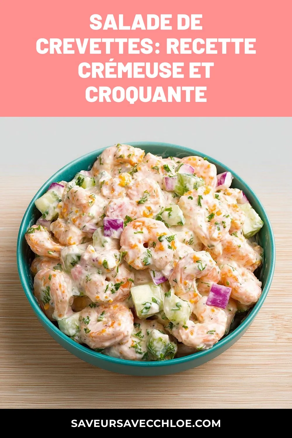 Pour une présentation créative de cette délicieuse salade de crevettes crémeuse et croquante, envisagez de la servir dans de jolies verrines individuelles. Disposez les crevettes et les légumes en couches successives pour un effet visuel élégant et appétissant. Vous pouvez également garnir chaque verrine d’une petite feuille de persil frais pour une touche de couleur et de fraîcheur supplémentaire.