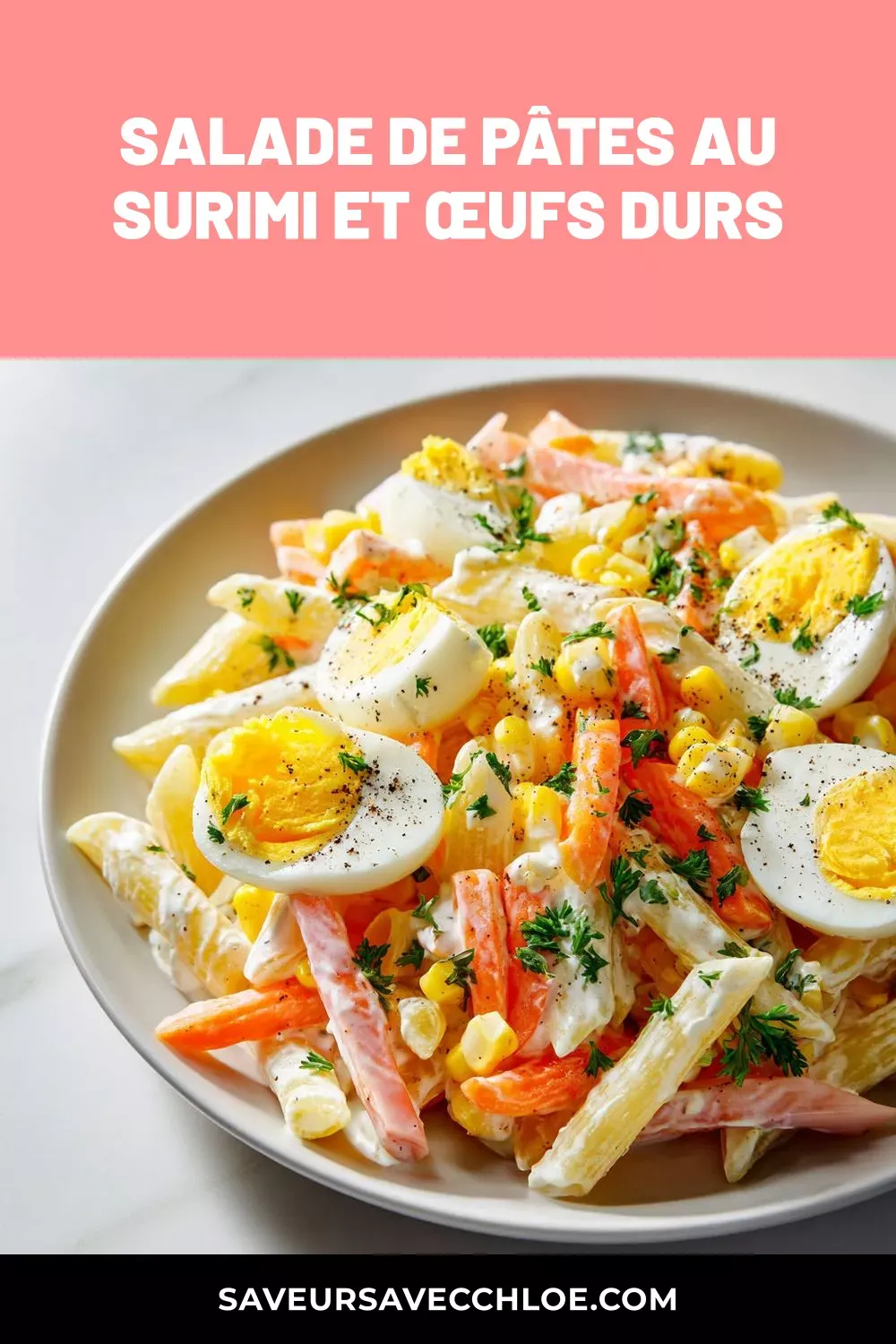 Salade de pâtes au surimi et œufs durs