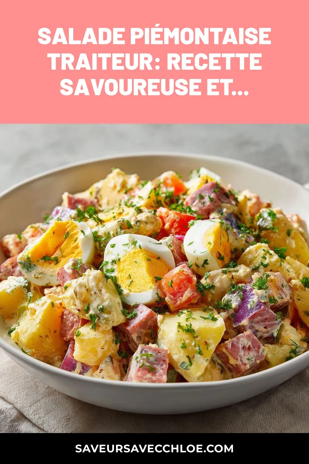 Bienvenue dans l’univers délicieusement réconfortant de la salade piémontaise façon traiteur, un mets généreux et savoureux qui évoque les doux souvenirs de repas en famille. Cette recette allie la tendresse des pommes de terre, la richesse des œufs durs, les accents fumés du cervelas et le croquant des cornichons aigres-doux, le tout enrobé d’une sauce crémeuse qui lie parfaitement tous les éléments. C’est un plat que l’on aime préparer la veille, idéal pour les grandes tablées et les moments de partage.